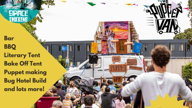 Earth’s unlikely hero: an adventurous chicken who is blasted into space to solve all our planet’s problems. Sounds ridiculous? Not for our heroic hen who will boldly go where no poultry has gone before…With stunning puppetry and original banjo synth music follow this rocket-fuelled tale all on top of a van. The show promises an intergalactic adventure from the henhouse to the milky way!